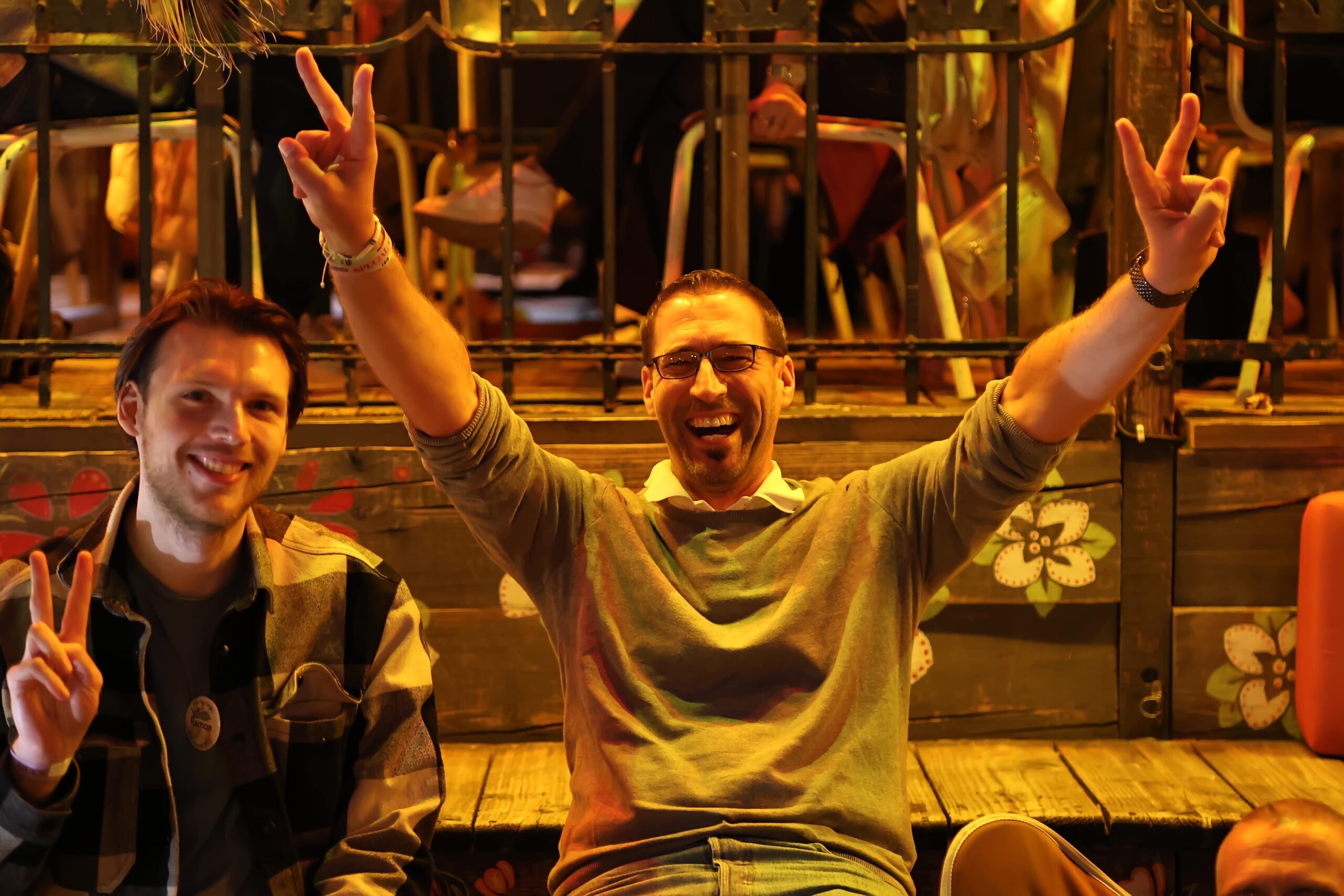 Am Freitagmorgen, noch vor dem ersten Kaffee, traf sich das gesamte Team am Kölner Hauptbahnhof. Statt Laptop und DATEV standen diesmal Tanzschuhe und gute Laune auf dem Programm. Kurz nach 8 Uhr rollte der eigens gecharterte Partyzug Richtung Hamburg – inklusive DJ, ausgelassener Stimmung und jeder Menge Kölsch. Bereits kurz nach Abfahrt war klar: Das wird kein gewöhnlicher Betriebsausflug. Der Zug wackelte im Takt und das Kölsch floss in Strömen.